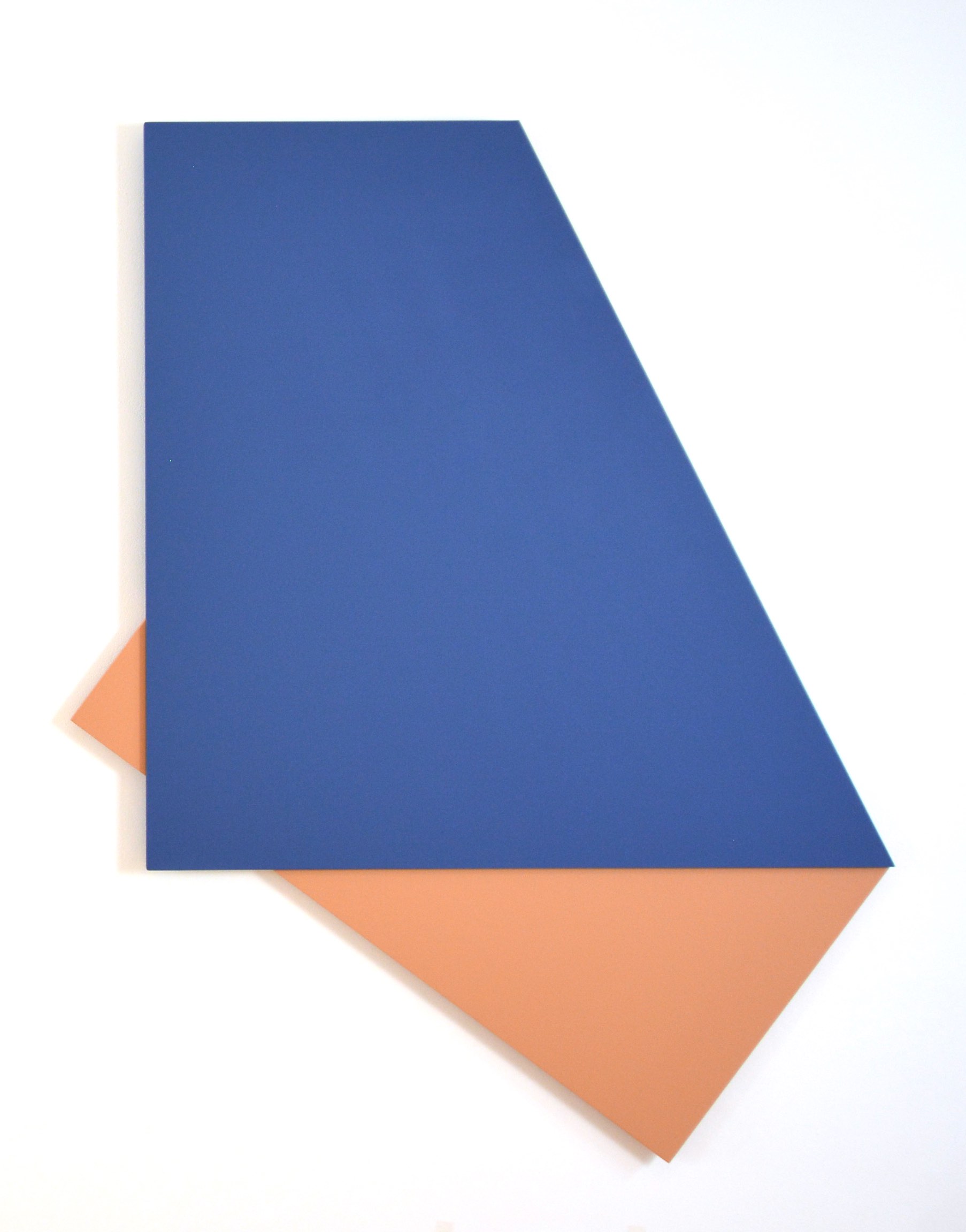 The sleek, even, coloured surfaces are painted delicately so that they are free of gestural brush strokes, and fields of saturated clean-edged colour appear to float on the surface of the wall. A rear wall fitting is attached so that the sculpture floats just off the wall and creates a slight underlying shadow.
